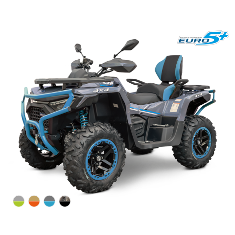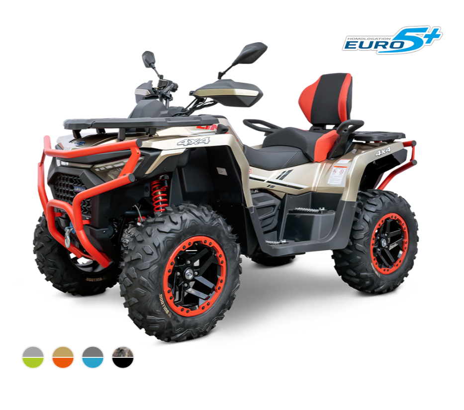Úžitková / pracovno-rekreačná štvorkolka, T3b, dlhý rázvor, vysokovýkonné Full-LED matrixové svetlomety, LED svetlá pre denné svietenie, predné dynamické LED blinkre, kvapalinou chladený jednovalec 580 cm3, posilňovač riadenia EPS, EFI, automatická prevodovka CVTech/ s uzávierkou predného aj zadného diferenciálu, plynokapalinové plne nastaviteľné tlmiče s oddelenou nádobkou nezávislá dvojitá A-ramená, 4x kotúčová brzda, ťažné zariadenie, masívne predný a zadný ochranný rám, kompozitné nosiče vpredu a vzadu, El. navijak 3000lbs s nylonovým lanom a diaľkovým ovládaním, 14" ALU kolesá so systémom Beadlock, 26" pneumatiky Bulldog, hliníkové protišmykové stúpačky vodiča a spolujazdca, dvojfarebne prešívaná sedačka spolujazdca a opierka chrbta, farebne lakovaná A-ramena.
