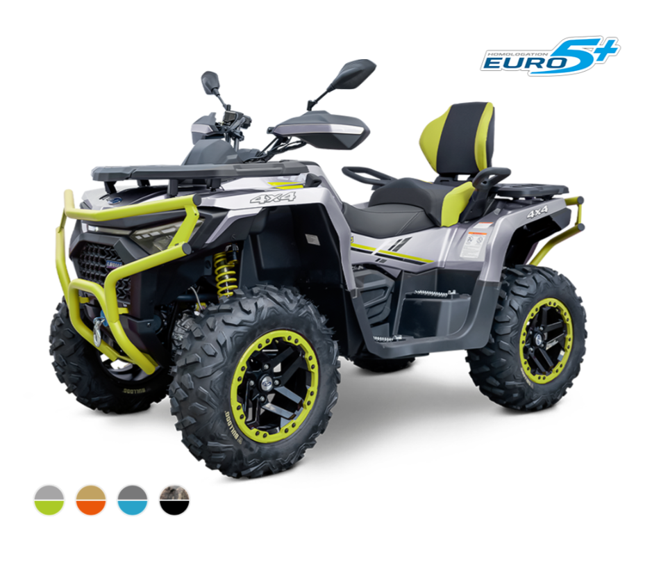 Ostré línie, vyvážené proporcie a dynamický dizajn, ktorý je zároveň emocionálny aj elegantný: od atraktívnych liatych kolies cez dominantnú mriežku chladiča až po prepojené LED svetlá – dizajn je na úplne novej úrovni a vytvára jednu z najkrajších a najelegantnejších štvorkoliek Linhai. Výrazné farebné akcenty vrátane lakovaných pružín a ramien zvyšujú atraktivitu verzie PRO.